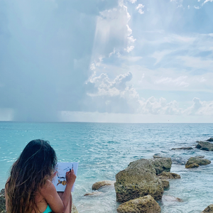 Reflecting in Maui while painting on the beach, my magical musings were interrupted only by the infectious laughter of my children, the sightings of many blowhole sprays of whales in the distance, and the crashing of the waves. Moments like these make my world go around.