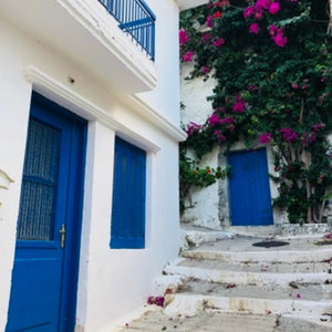 Wandering aimlessly through the meandering streets in a small Greek town, past white stucco huses and blue windows, there are surprises that spark my creativity at every corner. Time stood still, and that is when the artistic magic happens and the creations pour out of me.
